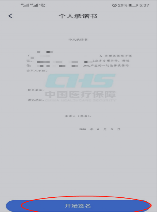第七步:个人承诺书会带出个人信息,确认无误且认真阅读后, 点击下方“开始签名”。签名完成后,上传“本人户口本”和“被绑定人户口本”。可拍摄,也可在相册中选择。