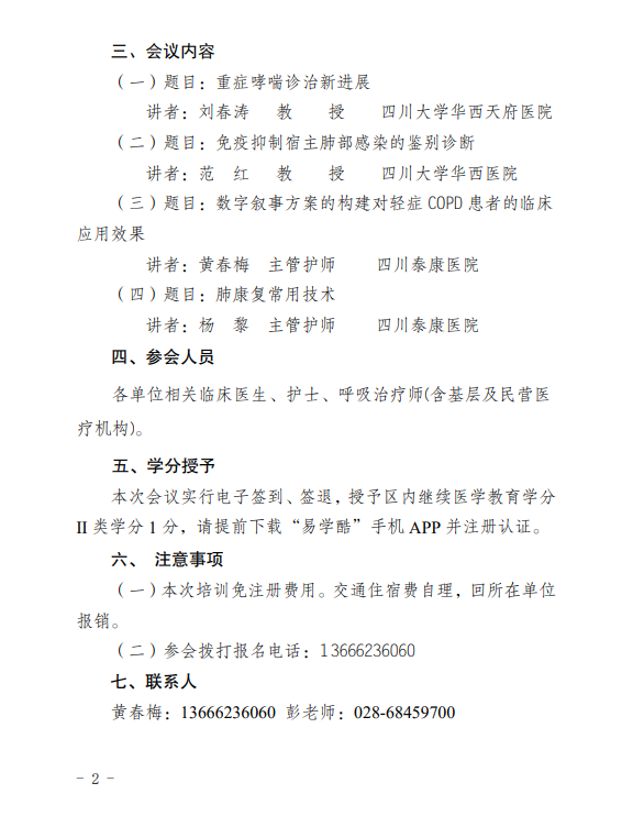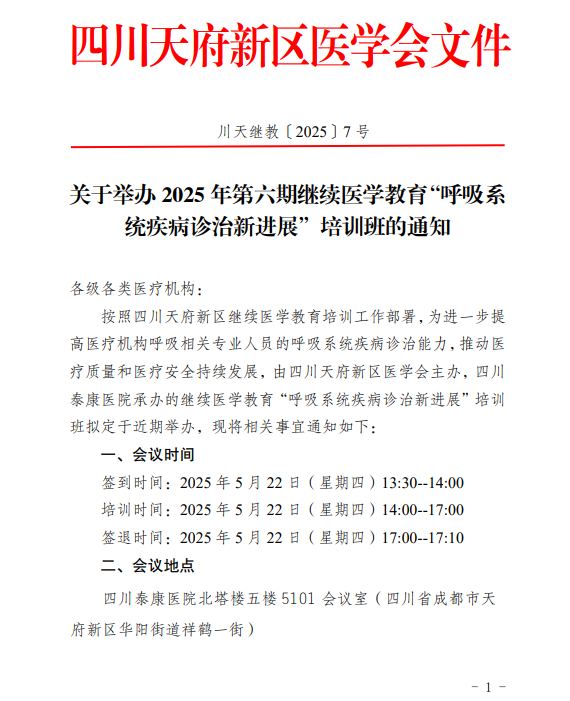 关于举办 2025 年第六期继续医学教育“呼吸系统疾病诊治新进展”培训班的通知