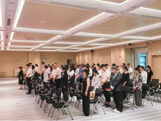 讲座结束后,全体参会人员庄严肃立,为在抗日战争中英勇牺牲的英烈默哀五分钟。现场寂静无声,大家以深切缅怀表达对革命先辈们奉献与牺牲的崇高敬意。