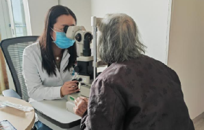 2025年末,患者金婆婆(化名)的孙辈在我院眼科张帆主任的诊间述说婆婆的病情和诊治经过,原来金婆婆除了因为白内障看不清楚以外,还患有较重的阿尔兹海默病,同时伴有颅内多发动脉瘤、慢性肾病、高血压等全身疾病,现在身边完全离不了家属,而旁边的金婆婆非常安静地坐在轮椅上,好奇地看着张帆主任。