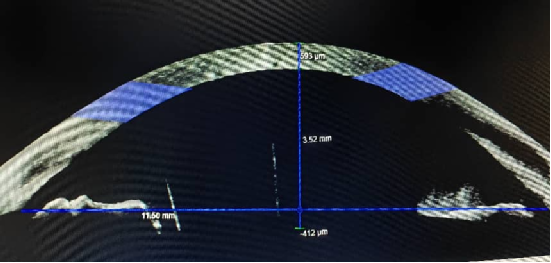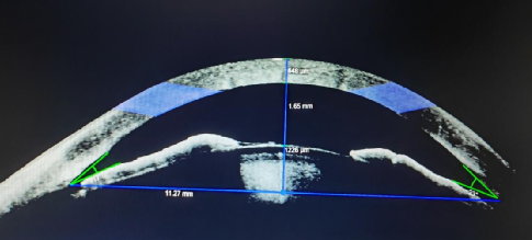 左眼术前前节OCT:左眼前房深度1.65mm(正常成年人为2.5—3.0mm)