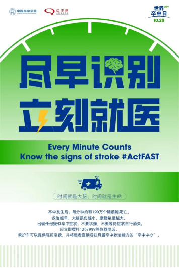 今年,世界卒中组织(WSO)以 “Every Minute Counts. Know the signs of stroke. Act FAST.”(分秒必争,识别卒中,快速行动)发出全球倡议,中国卒中学会结合国情明确 “尽早识别,立刻就医” 的中文主题。这短短 8 个字,藏着对抗卒中的关键答案。